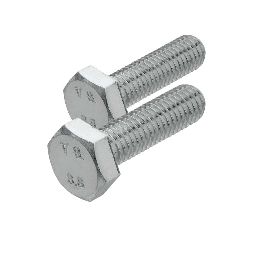 Șurub cap hexagonal DIN 933 ZA M8x30, zincat alb, filet complet – ideal pentru lucrări de construcții, metal, instalații și aplicații industriale. Fabricat din oțel de calitate, cu protecție anticorozivă prin zincare.