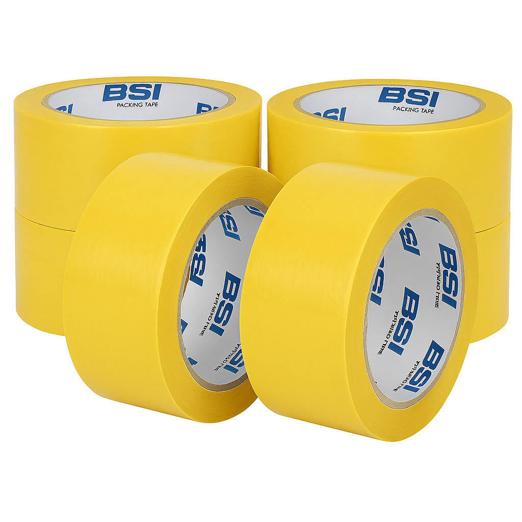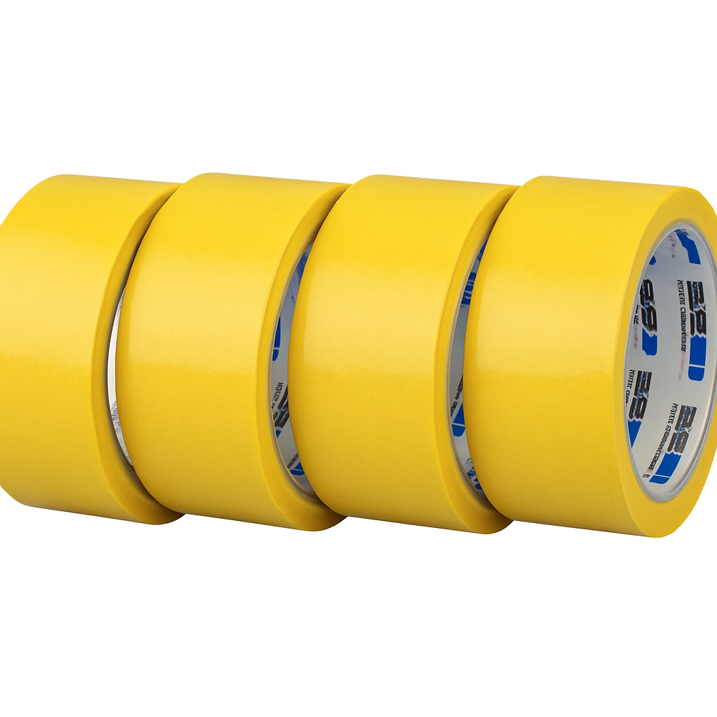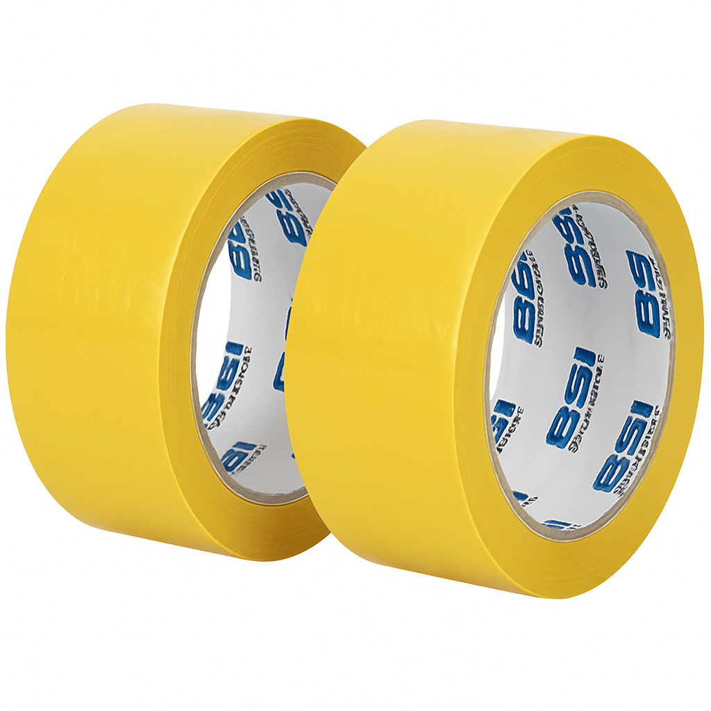 Banda de mascare galbena 48mm/48m BS pe suport de hartie semi-creponata, cu adeziv pe baza de cauciuc natural, permite expunerea la temperaturi de pana la 80°C