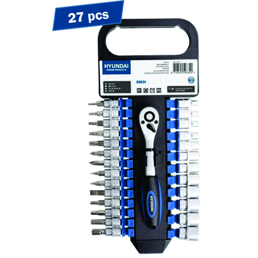 Set 27 chei clichet cu tubulare + biti 1/4, Hyundai HY-59634
